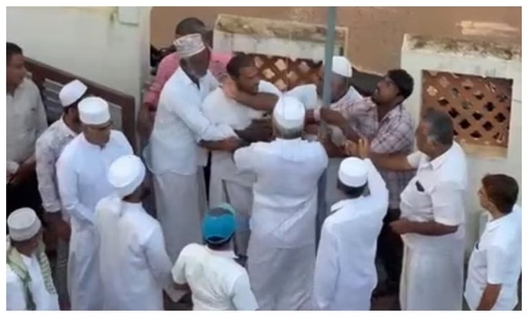 കാസർഗോഡ്: സ്വാതന്ത്ര്യദിനാഘോഷത്തോട് അനുബന്ധിച്ച് ദേശീയ പതാക ഉയര്‍ത്തുന്നതിനിടെ ജമാഅത്ത് അങ്കണത്തില്‍ തമ്മിലടി. വിദ്യാനഗര്‍ എരുതും കടവ് ജമാഅത്ത് അങ്കണത്തിലായിരുന്നു സംഭവം. നേതാക്കള്‍ തമ്മില്‍ അധികാര തര്‍ക്കം നില നില്‍ക്കുന്ന ജമാഅത്തിലാണ് സ്വാതന്ത്ര്യ ദിനത്തില്‍ പതാക ഉയര്‍ത്തുന്നതിനിടെ തമ്മിലടി ഉണ്ടായത്. മദ്രസാ വിദ്യാര്‍ഥികളും അധ്യാപകരും നോക്കി നില്‍ക്കെയാണ് ജമാഅത്ത് നേതാക്കള്‍ തമ്മില്‍ ഉന്തും തള്ളും ഉണ്ടായത്.