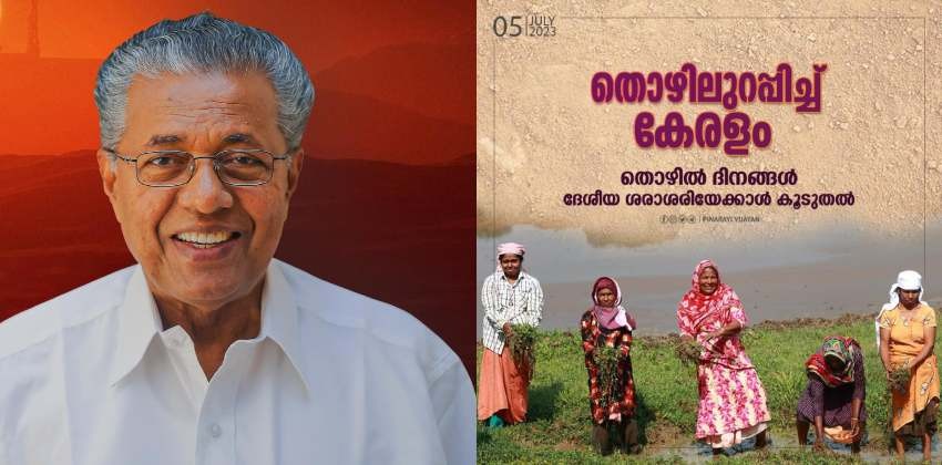 തൊഴിൽ ആവശ്യപ്പെട്ട 16,30,876 കുടുംബങ്ങൾക്ക് തൊഴിൽ അനുവദിക്കാൻ സാധിക്കുകയും അതിൽ 15,51,272 കുടുംബങ്ങൾ തൊഴിലെടുക്കുകയും ചെയ്തു.867.44 ലക്ഷം തൊഴിൽദിനങ്ങൾ സ്ത്രീകൾക്ക് നൽകാനും സാധിച്ചു. ആകെ സൃഷ്ടിക്കാൻ സാധിച്ച തൊഴിൽ ദിനങ്ങളുടെ 89.82 ശതമാനമാണത്. സാധാരണക്കാരോടുള്ള എൽഡിഎഫ് സർക്കാരിന്റെ പ്രതിബദ്ധതയ്ക്ക് അടിവരയിടുന്ന നേട്ടമാണിതെന്നും മുഖ്യമന്ത്രി ഫേസ്ബുക്കിൽ കുറിച്ചു.