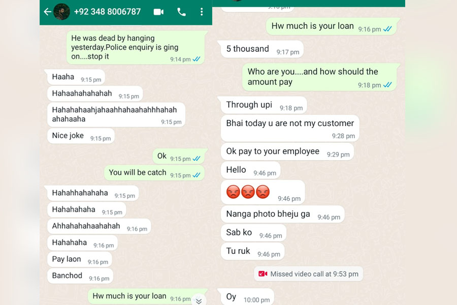 ലോൺ ആപ്പിന്റെ ഭീഷണിയെന്നാണ് സംശയിക്കുന്നത്. കുടുംബാംഗങ്ങളുടെ വ്യാജ ചിത്രങ്ങൾ സുഹൃത്തുക്കൾക്കും ബന്ധുക്കൾക്കും കഴിഞ്ഞദിവസം അജ്ഞാത നമ്പറിൽ നിന്ന് ലഭിച്ചിരുന്നു.