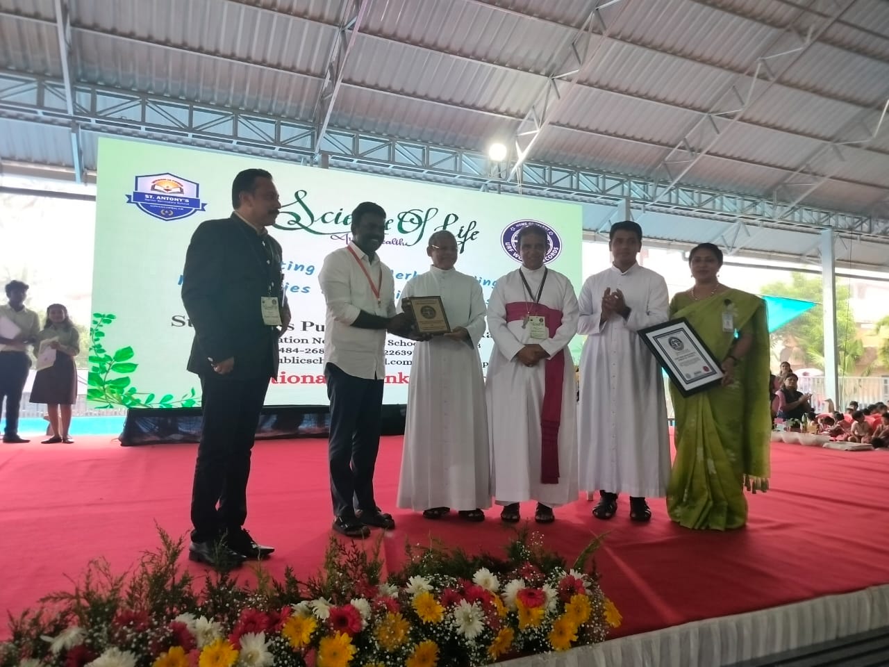 ഏറണാകുളം: സുസ്ഥിര ആരോഗ്യകരമായ ജീവിതം പ്രോത്സാഹിപ്പിക്കുന്നതിനായി കിഴക്കമ്പലം സെന്റ് ആന്റണീസ് പബ്ലിക് സ്കൂളിന് (സിബിഎസ്ഇ) ചുറ്റുമുള്ള 18 സ്കൂളുകൾക്ക് 160 ഇനത്തിലുള്ള 15,000 ഔഷധത്തൈകൾ വിതരണം ചെയ്താണ് റിക്കാർഡിൽ ഇടം പിടിച്ചത്.കിഴക്കമ്പലം സെന്റ് ആന്റണീസ് ഫൊറോന പള്ളി ഹാളിൽ 2023 സെപ്തംബർ 29 ന് ഉച്ചയ്ക്ക് 1.30 ന് നടന്ന ചടങ്ങിൽഗിന്നസ് സുനിൽ ജോസഫ്, ചീഫ് എഡിറ്റർ & ഇന്റർനാഷണൽ ജൂറി, യു ആർ എഫ് കൊൽക്കത്ത റിക്കാർഡ് പ്രഖ്യാപനം നടത്തി.എറണാകുളം-അങ്കമാലി മേജർ അതിരൂപത ആർച്ച് ബിഷപ്പ് എമിരിറ്റസ് മാർ ആന്റണി കരിയിൽ യു.ആർ.എഫ് സർട്ടിഫിക്കറ്റ് സ്കൂൾ മാനേജർ ഫാ.ഫ്രാൻസിസ് അരീക്കലിന്