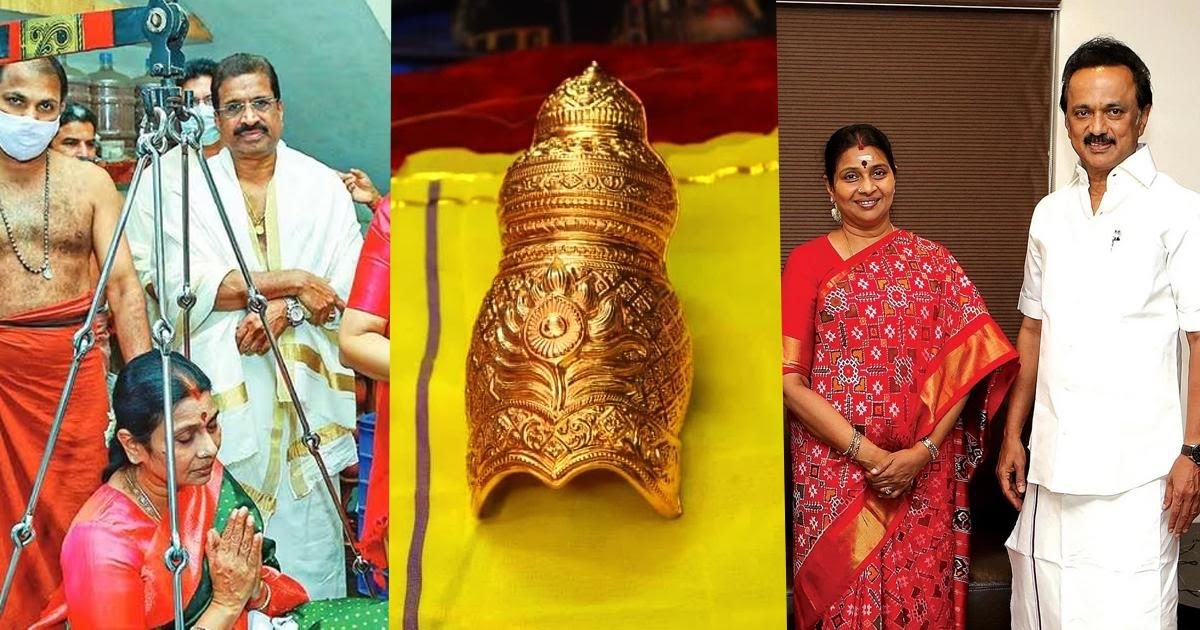 ഗുരുവായൂർ:തമിഴ്നാട് മുഖ്യമന്ത്രി സ്റ്റാലിന്റെ ഭാര്യ ദുർഗ സ്റ്റാലിൻ ഗുരുവായൂർ ക്ഷേത്രത്തിലേക്ക് 32 പവൻ തൂക്കം വരുന്ന സ്വർണ കിരീടവും ചന്ദന മുട്ടികള് അരയ്ക്കുന്നതിന് പ്രത്യേകം നിര്മിച്ച മെഷീനും സമർപ്പിച്ചു. മൂന്നു ലക്ഷത്തോളം രൂപ വിലവരുന്ന മെഷിനാണ് ദുർഗ സ്റ്റാലിൻ, ഗുരുവായൂർ ക്ഷേത്രത്തിൽ വഴിപാടായി സമർപ്പിച്ചത്.