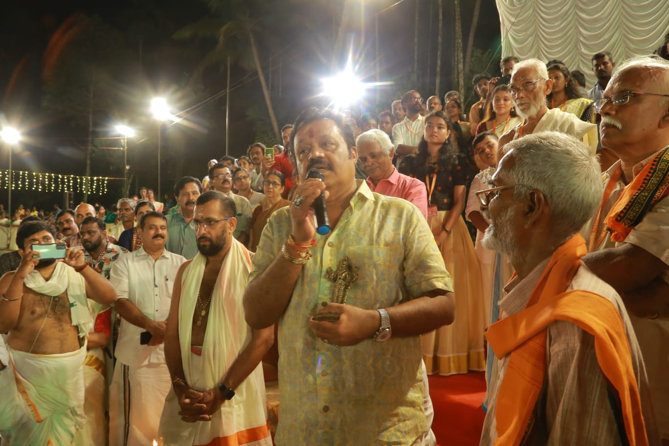 കുളത്തിന്റെ മധ്യഭാഗത്ത് മണ്ഡപത്തിൽ പ്രതിഷ്ഠിക്കുന്നതിനുള്ള ശ്രീകൃഷ്ണവിഗ്രഹം സുരേഷ് ഗോപിയിൽ നിന്നും കാർമികസംഘം ഏറ്റുവാങ്ങി. ചെണ്ടവാദ്യമേളത്തിന്റെ അകമ്പടിയോടെ പ്രതിഷ്ഠാ ചടങ്ങ് നടന്നു. ഗുരുവായൂർ ക്ഷേത്രകുളത്തിന്റെ മാതൃകയിൽ നിർമിച്ച കുളത്തിൽ തയ്യാറാക്കിയ മണ്ഡപത്തിലാണ് വിഗ്രഹപ്രതിഷ്ഠ നടന്നത്.
