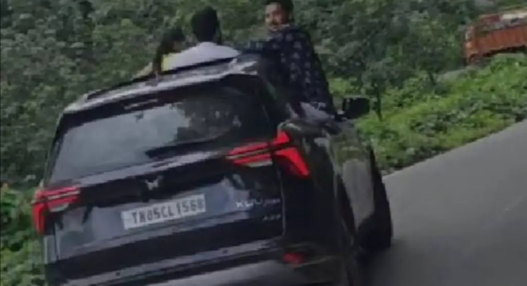 രണ്ട് വാഹനങ്ങള്ക്ക് കഷ്ട്ടിച്ച് കടന്ന് പോകാൻ പറ്റുന്ന താമരശ്ശേരി ചുരത്തിലൂടെയാണ് ഈ അപകടം നിറഞ്ഞ യാത്ര. നാല് പേരായിരുന്നു വാഹനത്തില് ഉണ്ടായിരുന്നതെന്നാണ് പ്രധാമിക നിഗമനം. ഇതില് രണ്ട് പേര് സണ് റൂഫ് ഓപ്പണ് ചെയത് ആര്ത്ത് ഉല്ലസിച്ചും ,ഒരാള് ഡോറില് ഇരുന്ന് കൈയും, തലയും പുറത്തേക്ക് ഇട്ടുമാണ് യാത്ര. ദൃശ്യങ്ങള് പുറത്ത് വന്നതിനെ തുടര്ന്ന് ലക്കിടിയില് വച്ച് ഹൈവേ പോലീസ് വാഹനം കസ്റ്റഡിയിലെടുത്ത് പിഴ ഈടാക്കി. തമിഴ്നാട് സ്വദേശിയുടെ ഉടമസ്ഥതയിലുള്ളതാണ് കാര്. യാത്രക്കാര് ചെന്നൈ സ്വദേശികളാണെന്ന് പോലീസ് പറഞ്ഞു.
