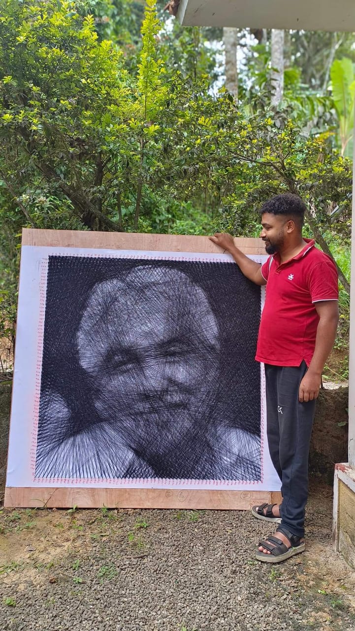 കട്ടപ്പന :വ്യത്യസ്തമായ കലാസൃഷ്ടികൾ കൊണ്ട് അത്ഭുതപ്പെടുത്തുന്ന അനുഗ്രഹീത കലാകാരനാണ് ഇടുക്കി ജില്ലയിലെ നെടുംകണ്ടം തൂക്കുപാലം സ്വദേശിയായ ടുട്ടുമോൻ ഇടുക്കി. ഇത്തവണ 8000 മീറ്റർ നൂലുപയോഗിച്ച്, 6 ദിവസം കൊണ്ട് അന്തരിച്ച മുൻ മുഖ്യമന്ത്രി ഉമ്മൻ ചാണ്ടിയുടെ നൂൽ ചിത്രം ഒരുക്കിയിരിക്കുകയാണ് ടുട്ടുമോൻ.