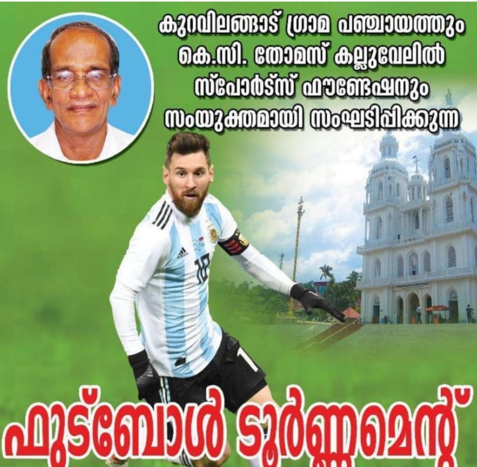 കടുത്തുരുത്തി: കുറവിലങ്ങാട് ഗ്രാമപഞ്ചായത്തും കെ സി തോമസ് കല്ലുവേലിൽ ഫൗണ്ടേഷനും സംയുക്തമായി സംഘടിപ്പിക്കുന്ന അണ്ടർ 17 ഫുട്ബോൾ ടൂർണമെന്റ് ആഗസ്റ്റ് 26ന് ശനിയാഴ്ച്ച രാവിലെ 9.00 മുതൽ കുറവിലങ്ങാട് സെന്റ് മേരിസ് ബോയ്സ് ഹൈസ്കൂൾ ഗ്രൗണ്ടിൽ നടക്കും. 8 ടീമുകൾ പങ്കെടുക്കുന്ന മത്സരത്തിൽ 1-ാം സമ്മാനർഹരർക്ക് കെ സി തോമസ് കല്ലുവേലിൽ മെമ്മോറിയൽ റോളിങ്ങ് ട്രോഫിയും 10001രൂപ ക്യാഷ് അവാർഡും നൽകും. 2-ാം സമ്മാനർഹരർക്ക് കെ സി തോമസ് കല്ലുവേലിൽ മെമ്മോറിയൽ എവർ റോളിങ്ങ് ട്രോഫിയും 7001രൂപാ ക്യാഷ് അവാർഡും നൽകും.