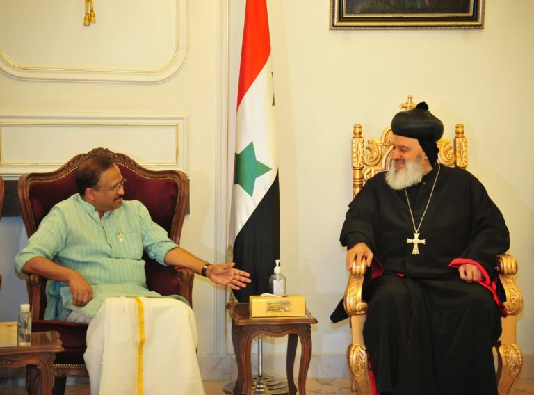 ദ്വിദിന ഔദ്യോഗിക സന്ദർശനത്തിന് സിറിയയിൽ എത്തിയ കേന്ദ്രമന്ത്രി, ദമാസ്ക്കസിലെ സഭാ ആസ്ഥാനത്താണ് പാത്രീയാര്‍ക്കീസ് ബാവയെകണ്ടത്.മലങ്കര സഭയിൽ ശാശ്വത സമാധാനം സ്ഥാപിക്കേണ്ട ആവശ്യകത ഇരുവരും ചർച്ചചെയ്തു.