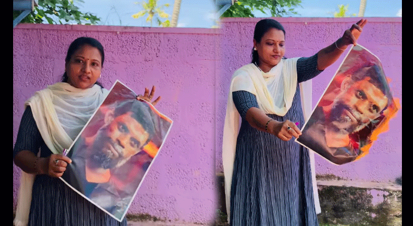 അന്തരിച്ച മുൻ മുഖ്യമന്ത്രി ഉമ്മൻ ചാണ്ടിയെ സോഷ്യൽ മീഡിയയിലൂടെ അധിക്ഷേപിച്ച നടന് വിനായകന്റെ ചിത്രം കത്തിച്ച് മഹിളാ കോൺഗ്രസ് പ്രവർത്തക ബിന്ദു ചന്ദ്രൻ വി.തന്റെ പ്രവൃത്തിക്കെതിരെ ഒന്നല്ല ഒൻപതിനായിരം കേസ് വന്നാലും സഹിക്കുമെന്നും ജയിലിൽ കിടക്കാൻ തയാറാണെന്നും ബിന്ദു ചന്ദ്രൻ വീഡിയോയിൽ പറഞ്ഞു.
